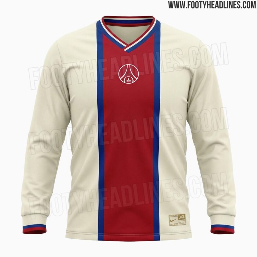 Footy Headlines confirms the leak and also publishes a long-sleeve version of the model. The design incorporates the characteristic elements of PSG from its founding years.